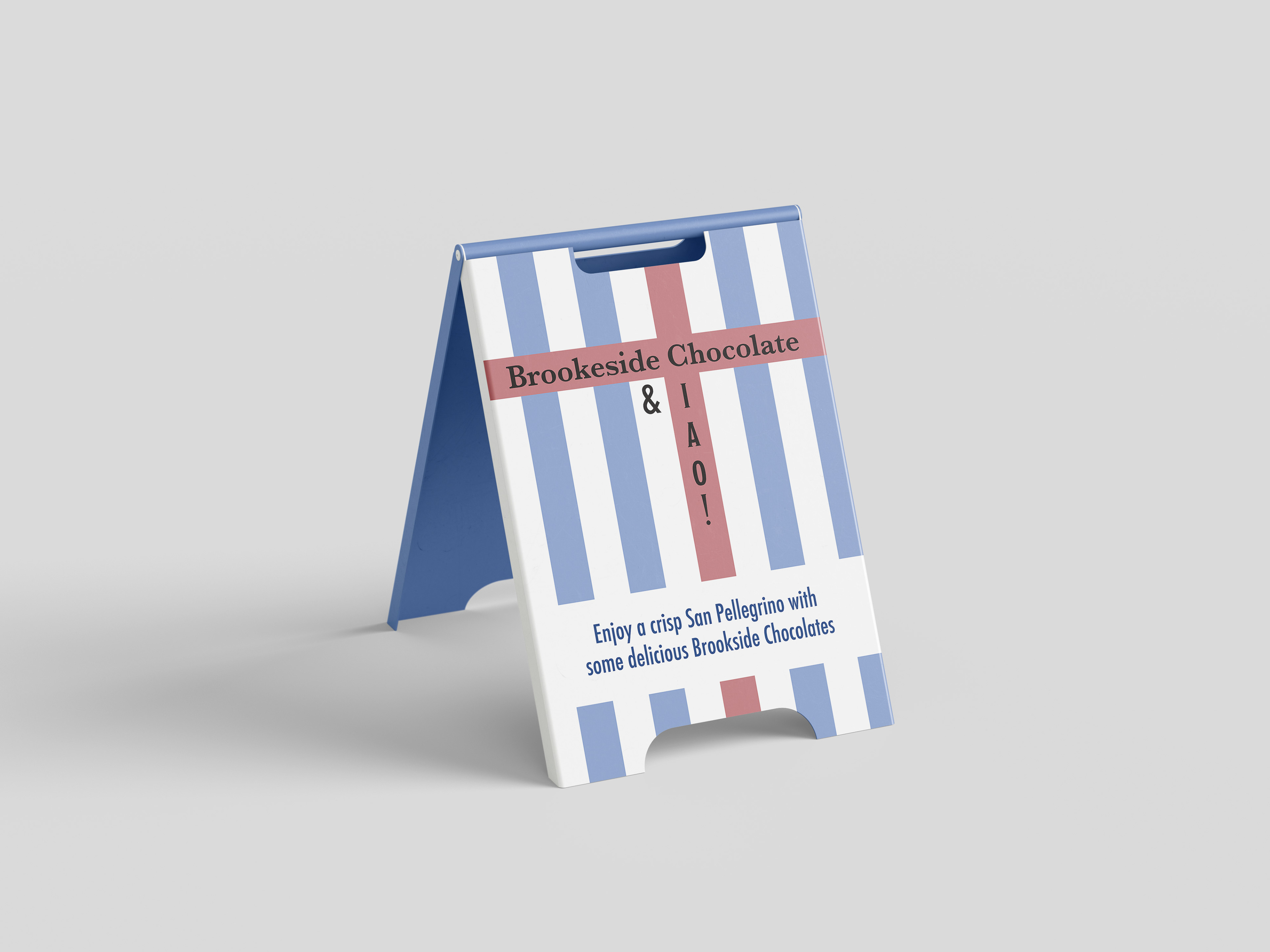 Brookside Dark Chocolate served as a strong brand collaborator, with the idea that both products would be sold together at holiday markets. A red stripe was added to delineate the collab from the main campaign. Outdoor signage and packaging were created in addition to social posts.